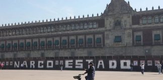 Pintan “Narcoestado” en las vallas frente a Palacio Nacional