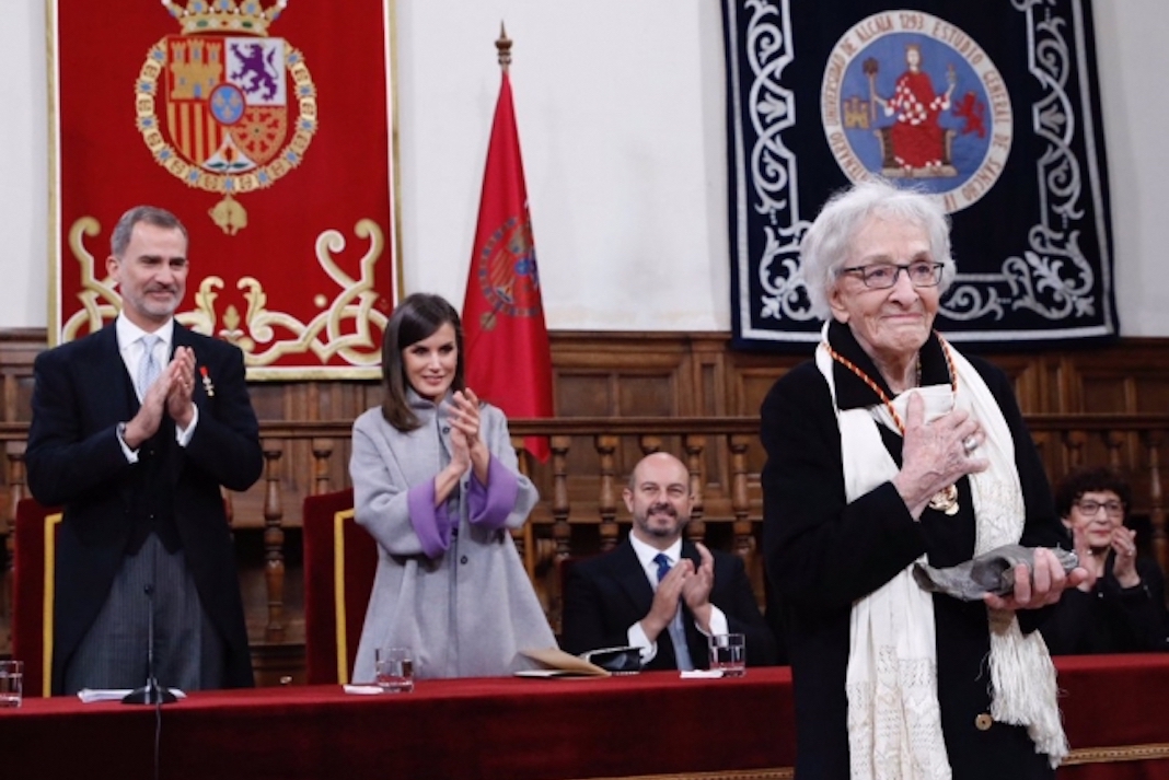 La escritora uruguaya Ida Vitale recibió este martes de manos del rey Felipe el Premio de Literatura Miguel de Cervantes 2018, máximo galardón de las letras en español que se entrega en el Paraninfo de la Universidad de Alcalá de Henares (Madrid).