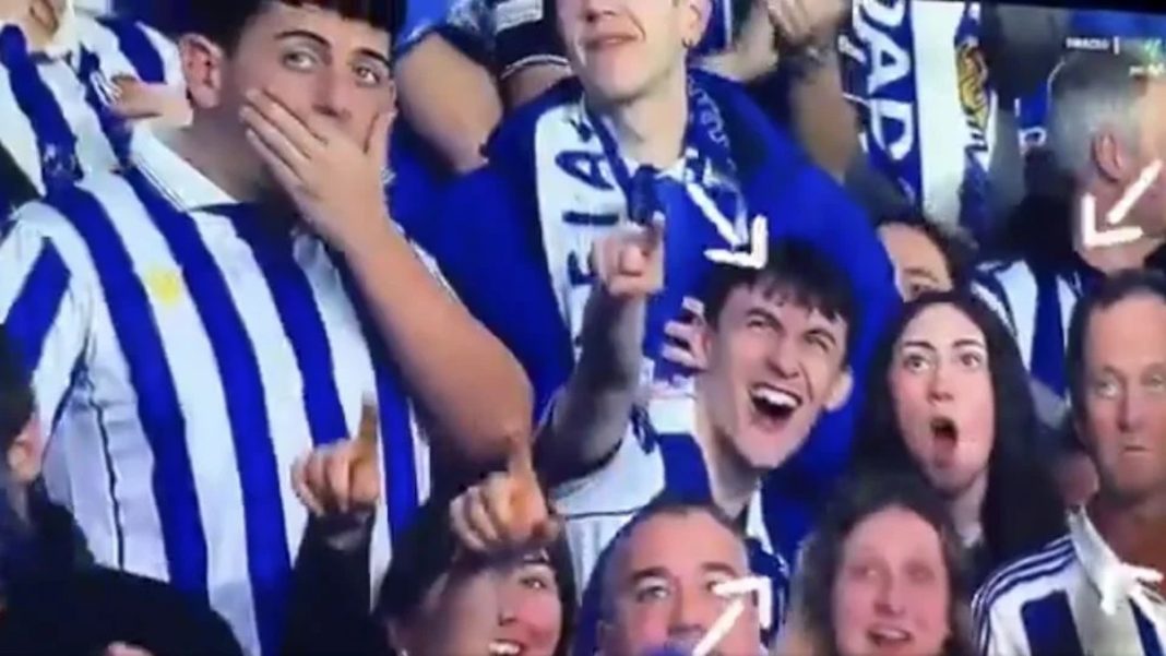 Sucedió el miércoles pasado en el estadio Reale Arena (Anoeta) durante la semifinal de vuelta de la Copa del Rey entre la Real Sociedad y el Athletic Club (1-0), cuando el encuentro estaba a punto de comenzar y un sector de aficionados del equipo local fueron enfocados.