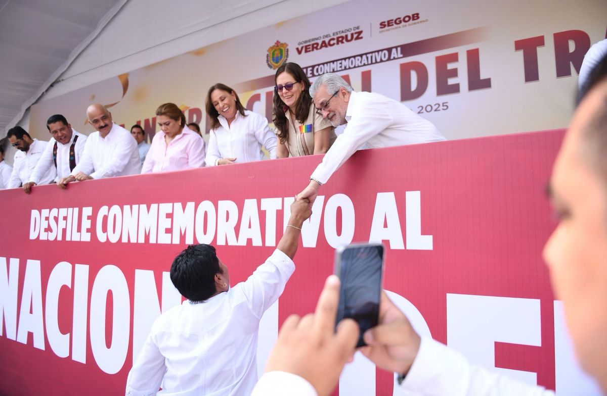 Xalapa, Ver.- El alcalde Alberto Islas Reyes asistió al desfile conmemorativo por el 139 aniversario del Día Internacional del Trabajo, acto que encabezó en esta ciudad la gobernadora Rocío Nahle García.