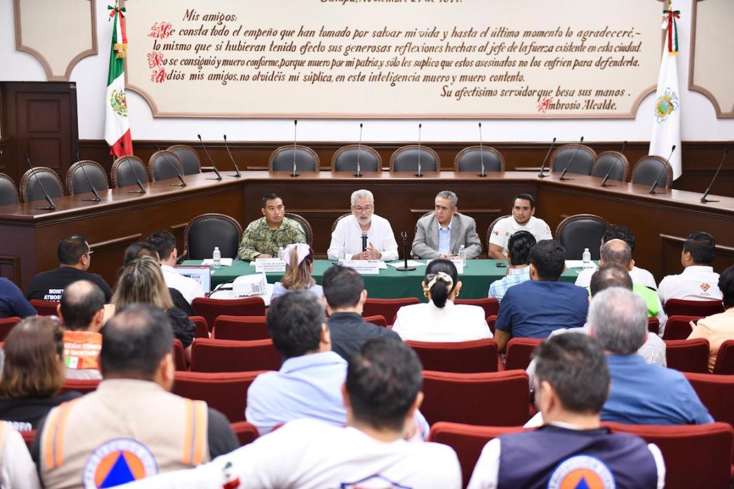 Ante funcionariado federal, estatal y municipal, el Edil advirtió que septiembre y octubre son los meses más críticos por el aumento en el potencial de lluvias, por lo que agradeció la participación de las distintas instancias gubernamentales y los sectores sociales y productivos para atender a la población de la mejor manera.