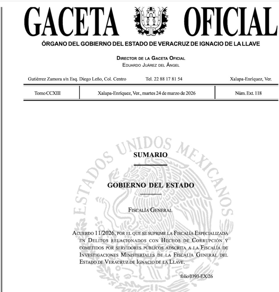 La Fiscalía General del Estado determinó la supresión de la Fiscalía Especializada en Delitos Relacionados con Hechos de Corrupción y Cometidos por Servidores Públicos, como parte de una reestructuración interna del organismo.