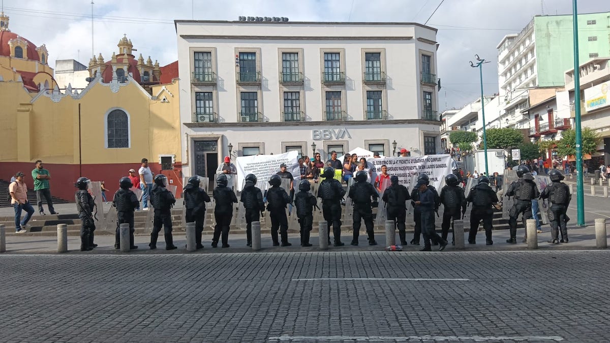 Xalapa, Ver.– Mientras el gobierno de Rocío Nahle repite el discurso del “amor” y la “transformación” para Veracruz, esta tarde la realidad se impuso con escudos y toletes: granaderos de la Secretaría de Seguridad Pública reprimieron a un grupo de ex trabajadores del extinto Seguro Popular que se manifestaba pacíficamente frente al Palacio de Gobierno para exigir el pago de sus indemnizaciones.