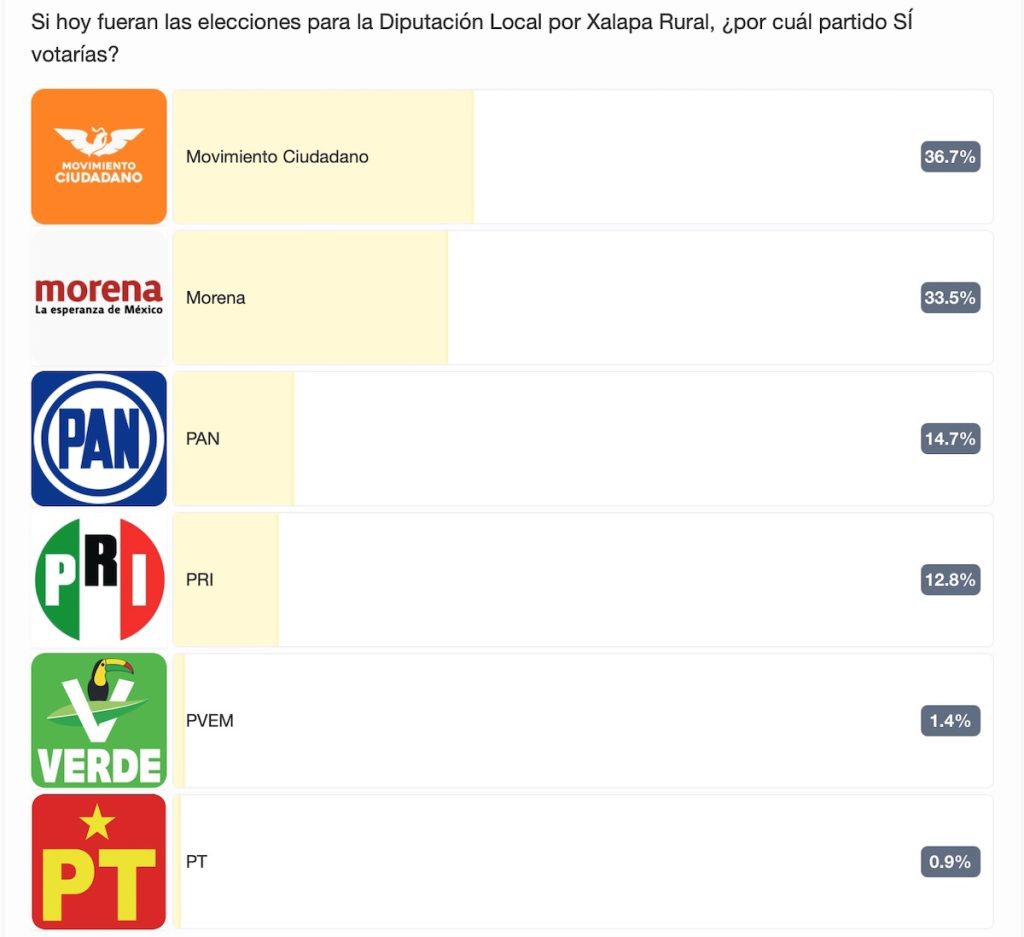 Desde el pasado 6 de marzo comenzó a circular en Facebook una de esas encuestas típicas de temporada preelectoral: rápidas, vistosas y muy útiles para fabricar percepciones. La publicó la cuenta “Hoy Veracruz”, con una pregunta sencilla: si hoy se realizaran las elecciones para la diputación local por Xalapa Rural, ¿por qué partido votaría la gente?