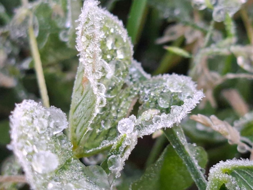 El fenómeno se evidenció con la formación de cristales de hielo sobre hojas, pastizales y diversas superficies expuestas, producto del descenso de la temperatura a 0 grados Celsius o menos.