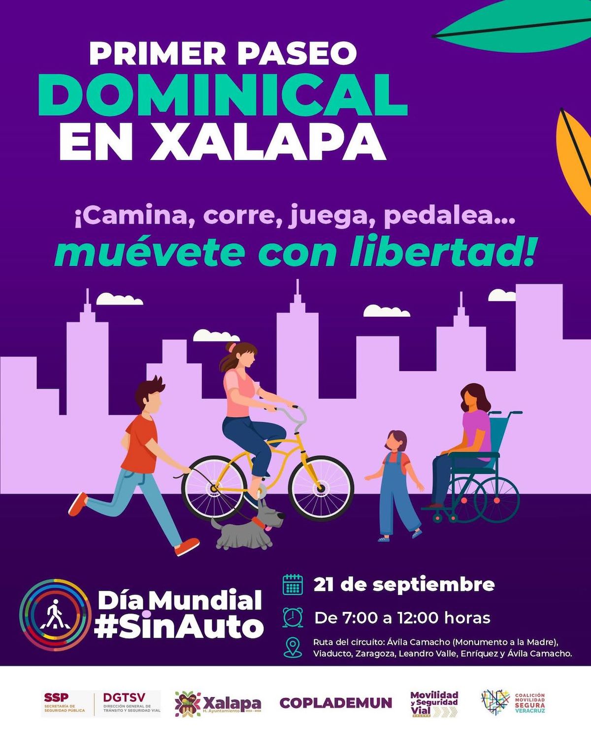 Xalapa, Ver.- Con el fin de conmemorar el Día Mundial sin Auto, mañana, de 7:00 a 12:00 horas, se llevará a cabo en la zona Centro el Primer Paseo Dominical.