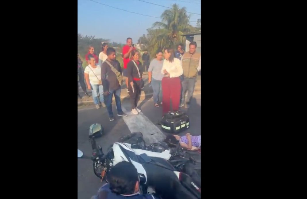 De acuerdo con testigos y material audiovisual que posteriormente circuló en redes sociales, la mandataria estatal detuvo su marcha, descendió de la camioneta oficial —que era escoltada por otras tres unidades— y se acercó directamente a las personas accidentadas al percatarse de la situación.