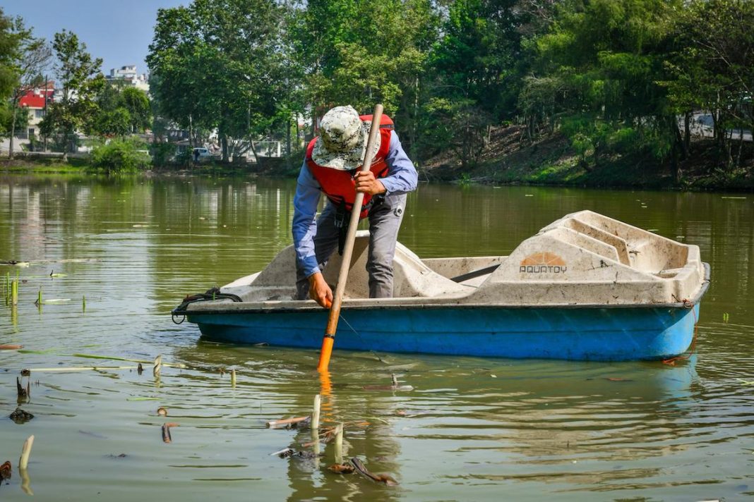 La directora de la dependencia, Ana Isabel Guevara Escobar, dio a conocer que con el apoyo de una lancha, se retiró el lirio acuático que obstruía el flujo del agua y afectaba la calidad del ecosistema.