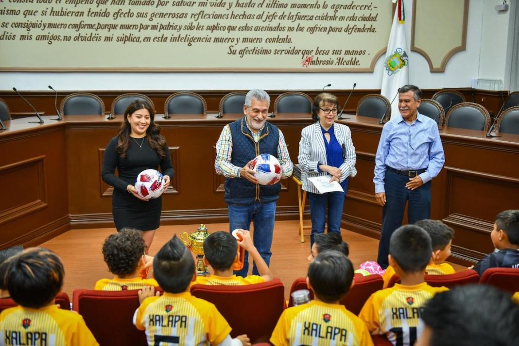 Xalapa, Ver.- El alcalde Alberto Islas Reyes, en compañía de la síndica única, Cecilia Leyla Coronel Brizio, recibió en la Sala de Cabildo a integrantes de la Selección de Futbol de Xalapa Categoría 2017, quienes representaron a la ciudad en el Torneo Estatal de Futbol celebrado en Poza Rica, donde obtuvieron el primer lugar.
