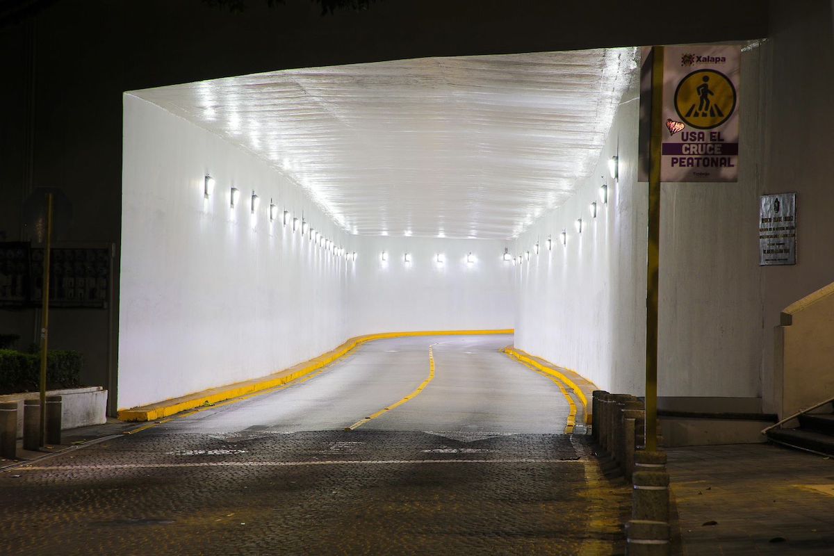 Xalapa, Ver.- Con el fin de contribuir a la seguridad vial y cumplir con los objetivos del programa de eficiencia energética y sostenibilidad del Ayuntamiento, personal de la Dirección de Alumbrado Público instaló 40 luminarias LED en el Viaducto del Parque Benito Juárez.