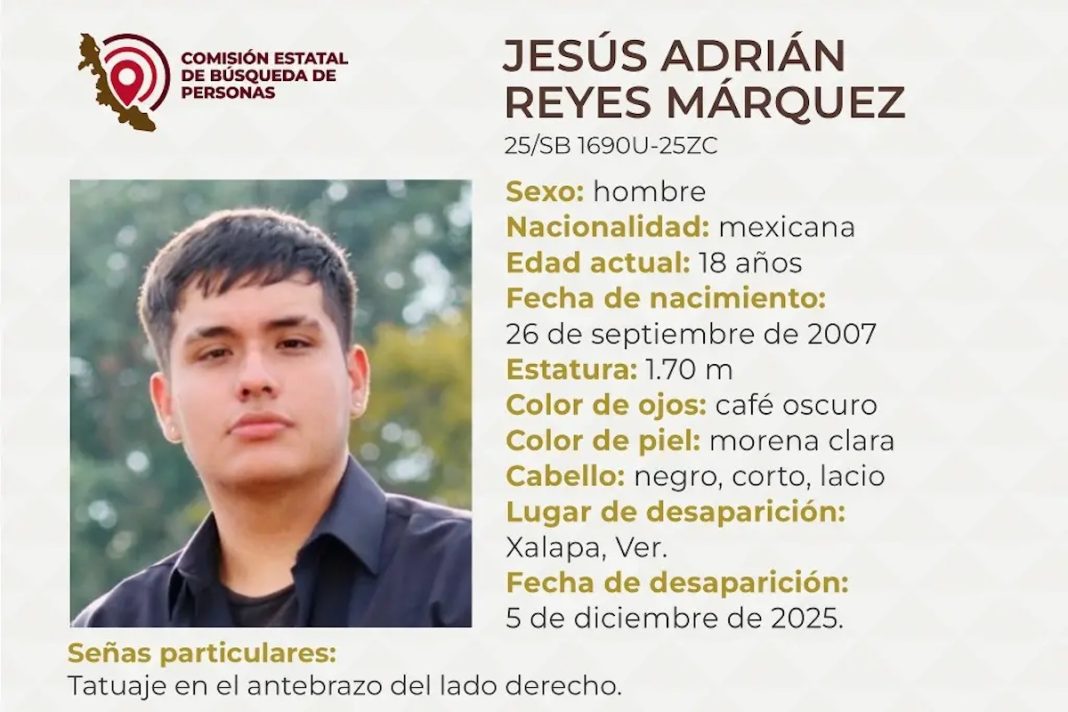 Xalapa, Ver. – La Comisión Estatal de Búsqueda reportó la desaparición de un joven de 18 años de edad en Xalapa, Veracruz.