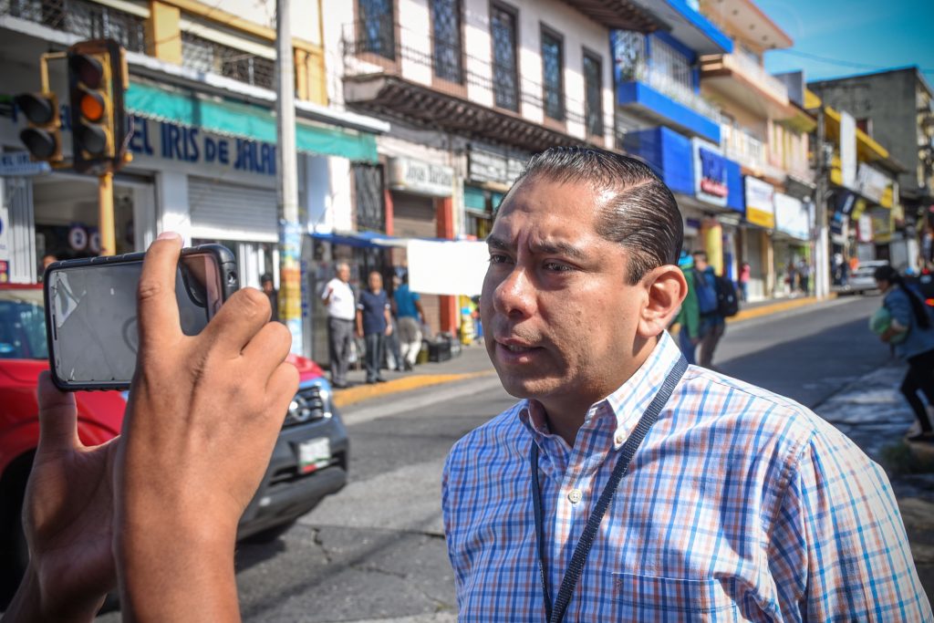 Xalapa, Ver.- La mañana de este viernes inspectores del Departamento de Inspección y Atención Comercial (DIAC), con apoyo de elementos de la Policía Municipal, implementaron un operativo para reubicar a las y los comerciantes informales instalados en las esquinas de las calles Revolución y Altamirano, así como Revolución casi esquina Victoria, con el objetivo de evitar la obstrucción al paso peatonal y el tráfico vehicular.