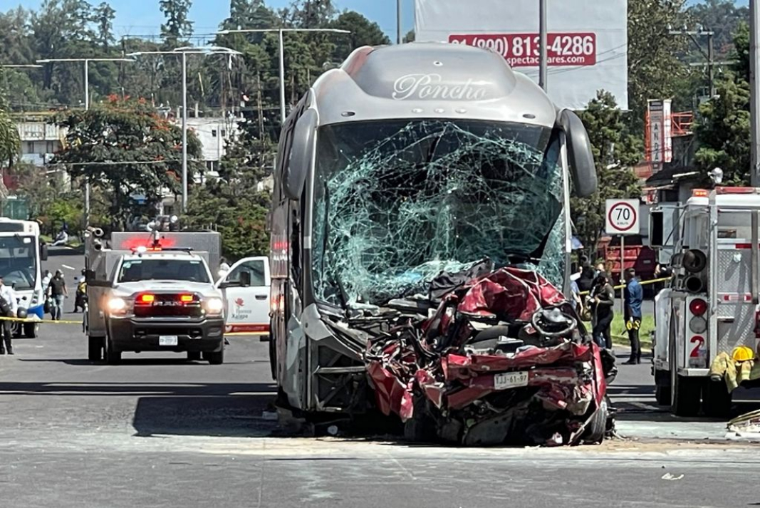 Un saldo preliminar de dos personas fallecidas dejó el choque de un autobús de turismo contra tres vehículos: una camioneta de redilas, y dos taxis.