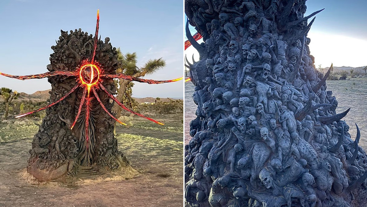 Un inquietante monolito de más de dos metros de altura fue encontrado en pleno desierto de California, generando alarma y una oleada de especulaciones en redes sociales. La estructura, de color negro, está cubierta con relieves de rostros gritando, cadáveres retorcidos, serpientes y un ojo gigante en el centro, lo que ha llevado a calificar el hallazgo como “de terror”.