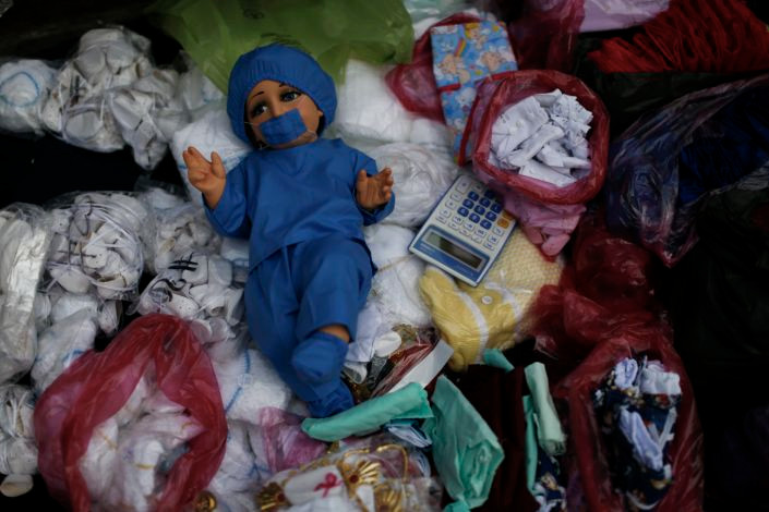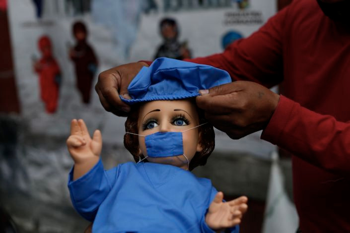 Andrea Macedo, encargada de un negocio de artículos religiosos en Zinacantepec, dijo que la pandemia y el aumento en casos positivos al Covid -19 no han detenido a los feligreses, quienes acuden a vestir a sus niños con indumentaria alusiva a los médicos, pues los consideran “los héroes y a quienes debemos agradecerles este año, por todo lo que han hecho”.