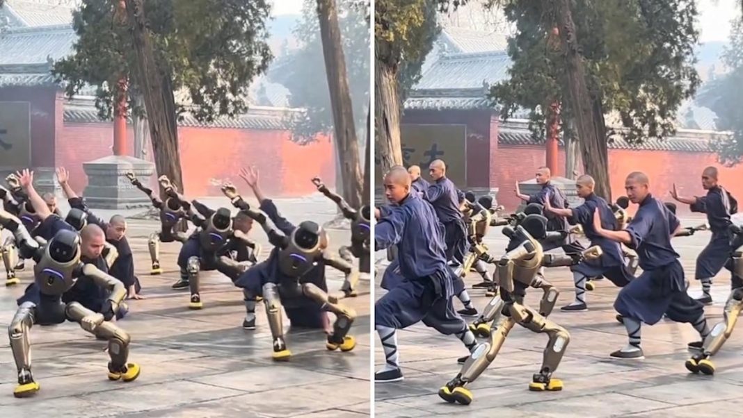 Monjes del templo Shaolin, ubicado en la provincia china de Henan, realizaron una sesión de entrenamiento de kung-fu en compañía de robots humanoides, como parte de una demostración que combina tradición marcial y desarrollo tecnológico.
