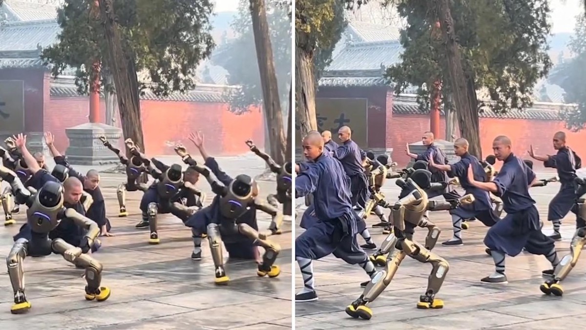 En un video difundido en redes sociales, se observa a los robots ejecutar movimientos básicos de artes marciales al mismo ritmo que los monjes, replicando posturas, desplazamientos y secuencias con un alto grado de coordinación. Las máquinas siguieron la rutina grupal sin interrupciones y mantuvieron la sincronía durante gran parte del entrenamiento.