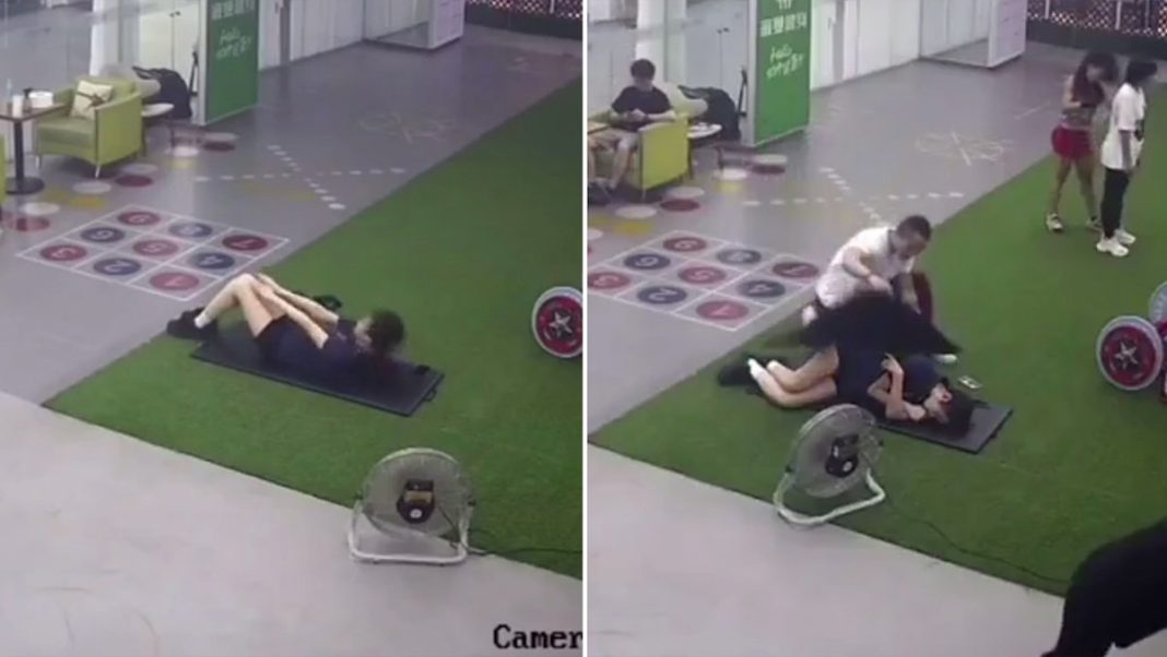 El sueño de la joven china duró 3 horas, hasta que uno de los asistentes del gimnasio se acercó a cubrirla con una esterilla de gimnasio. 100 % comprensión, 0 % juicio pic.twitter.com/J6BxfLq8xq