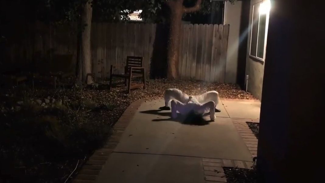 Además, para obtener un efecto aún más aterrador, lo disfrazaron con un vestido blanco y una peluca, dándole una apariencia parecida a la de la niña de la película ‘El aro’, ideal para asustar en Halloween.