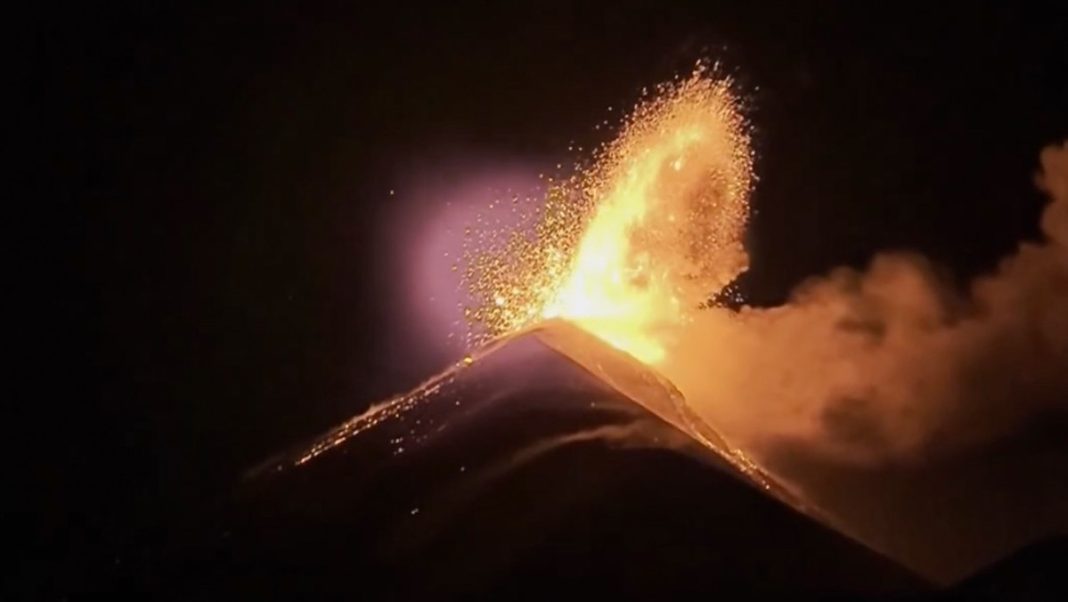Turistas que se encontraban en la zona captaron en video las explosiones incandescentes y los ríos de lava que descendían por las laderas del coloso, iluminando el cielo nocturno con destellos anaranjados. Las imágenes muestran columnas de material volcánico y fragmentos ardientes expulsados de manera continua.