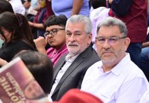 En el Patio de Honor de Palacio Nacional, se observó al hijo del expresidente Andrés Manuel López Obrador saludar al diputado de Morena, Ricardo Monreal.