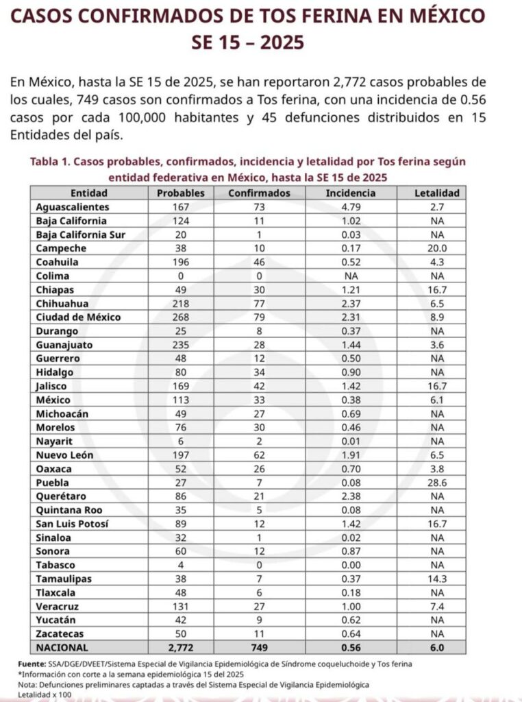 La Secretaría de Salud confirmó la muerte de 45 bebés a causa de tosferina, todos sin antecedentes de vacunación.
