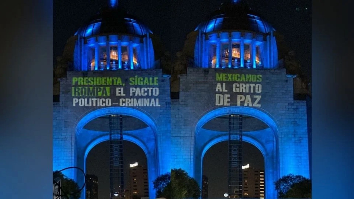 Un mensaje dirigido a la presidenta Claudia Sheinbaum fue proyectado la noche del miércoles en el Monumento a la Revolución, con el llamado: “Presidenta, sígale, rompa el pacto político-criminal”.