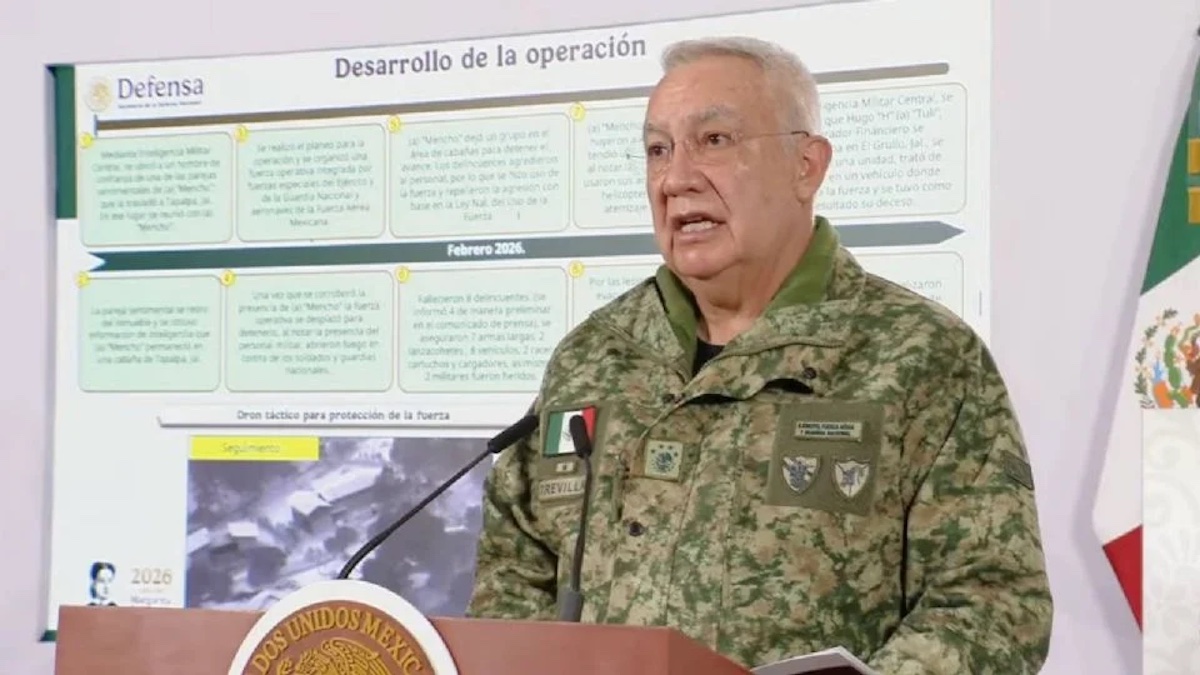 El titular de la Secretaría de la Defensa Nacional, general Ricardo Trevilla Trejo, informó que la localización de Nemesio Oseguera Cervantes se obtuvo tras el seguimiento al traslado de una de sus parejas sentimentales hacia el municipio de Tapalpa.