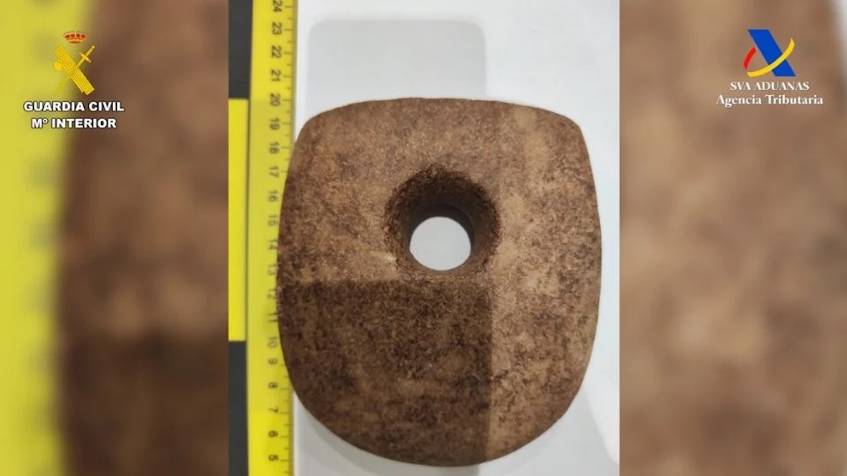 La Guardia Civil española y la Agencia Tributaria han asegurado diversos bienes arqueológicos y paleontológicos catalogados como patrimonio histórico de México y Ecuador, que fueron ingresados de contrabando por el aeropuerto de Bilbao, en el norte de España.