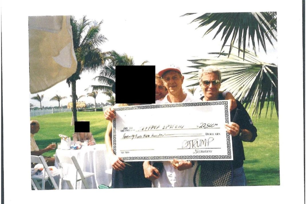 Legisladores de EE.UU. han publicado el lunes una fotografía en la que el financiero estadounidense Jeffrey Epstein, involucrado en uno de los peores escándalos del país por abuso sexual de menores, sostiene un cheque bancario en el que supuestamente figura el nombre del actual presidente Donald Trump.