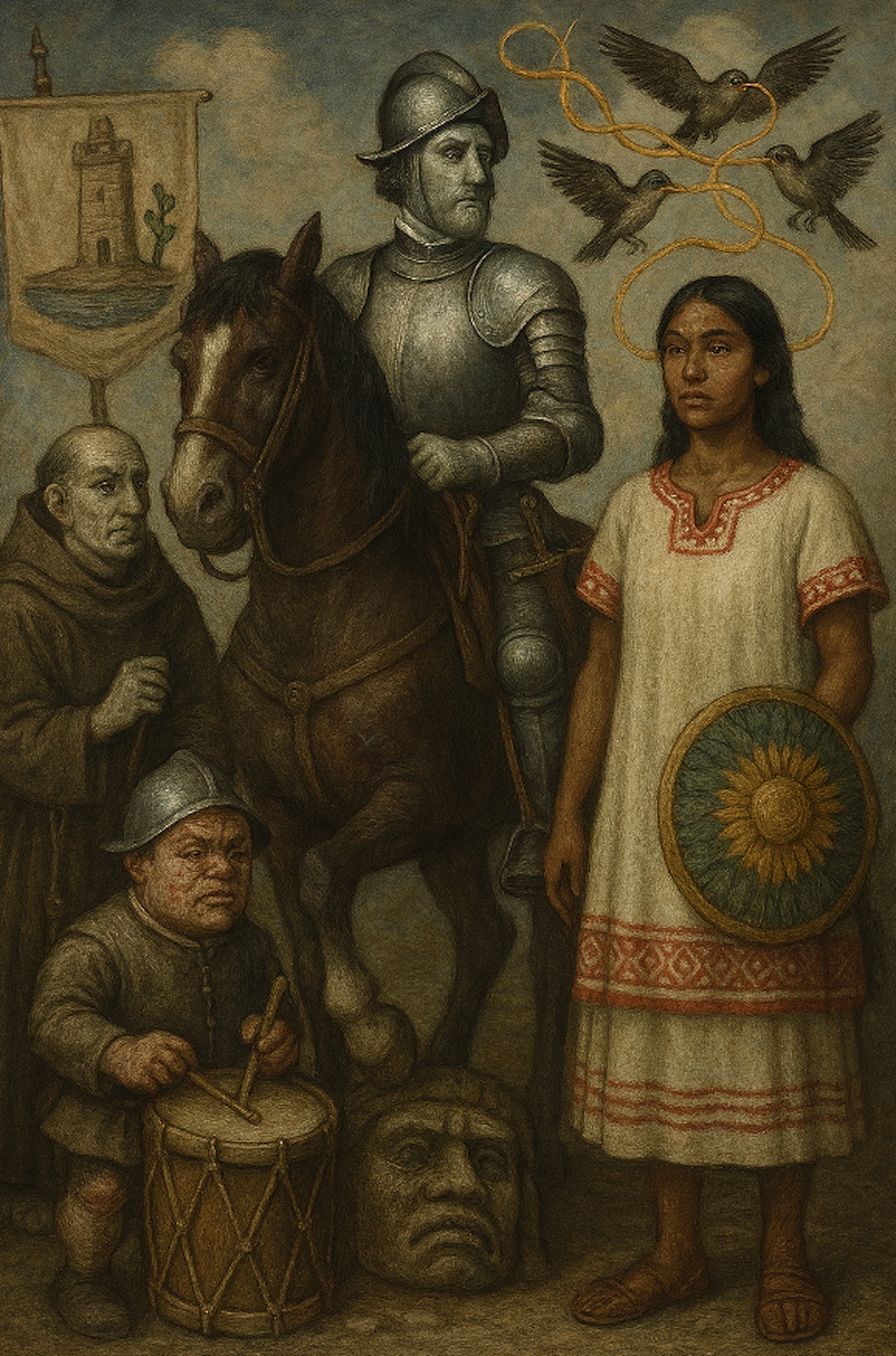 Atenidos a los informes del soldado Bernal. Fue a principios de abril de 1519 cuando una esclava de nombre Malintzin formó parte de un cortejo que los caciques de una región Golfo entregaron a Hernán Cortés. El capitán apenas si recalcó en ella y la regaló a un tal Alonso Hernández de Portocarrero. La expedición avanzó y para el 18 de abril, en las playas de Chalchicueyecan, los expedicionarios recibieron a una comitiva enviada por Moctezuma. Nadie se entendía hasta que intervino una esclava hablante de náhuatl y de maya.