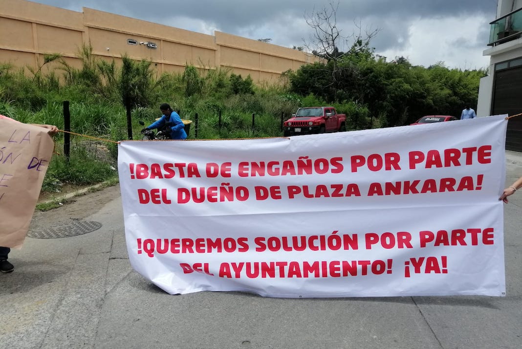 Vecinos inconformes se manifiestan en Bulevar Europa por funcionamiento de plaza comercial