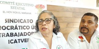 La secretaria general del Sindicato Democrático Único de Trabajadores del Instituto de Capacitación para el Trabajo del estado de Veracruz (SIDUTIV), Irma Palacios Santiago,...